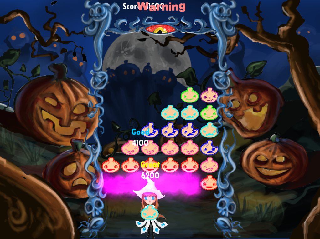 Enjoy three spooky themes each with 10 arcade levels: Pumpkin patch, spiders lair, and dark castle.